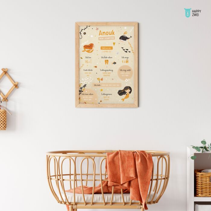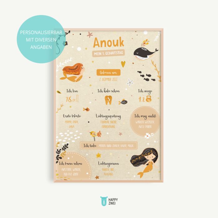 Liebevoll und individuell gestaltete «Meerjungfrau» Meilensteintafel zum 1. Geburtstag.