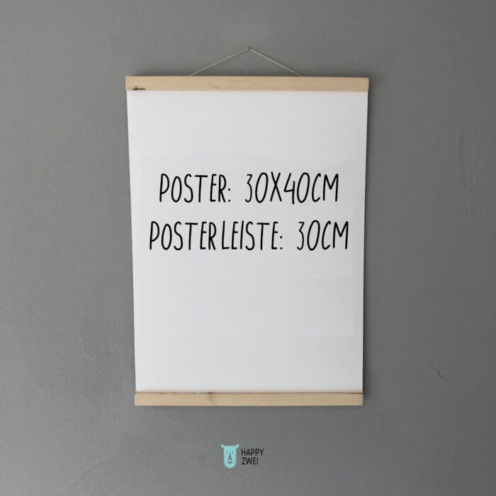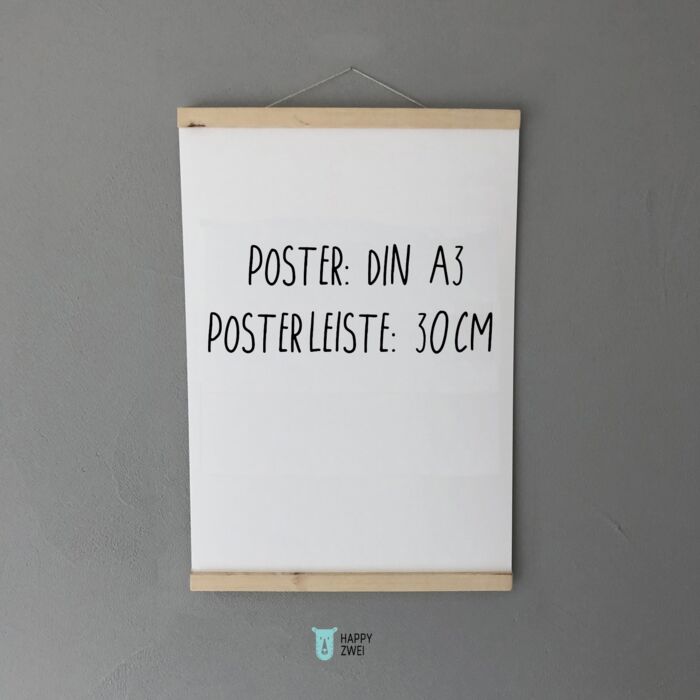 - Die Posterleiste 30 cm eignet sich für Poster in DIN A3 und 30x40 cm.